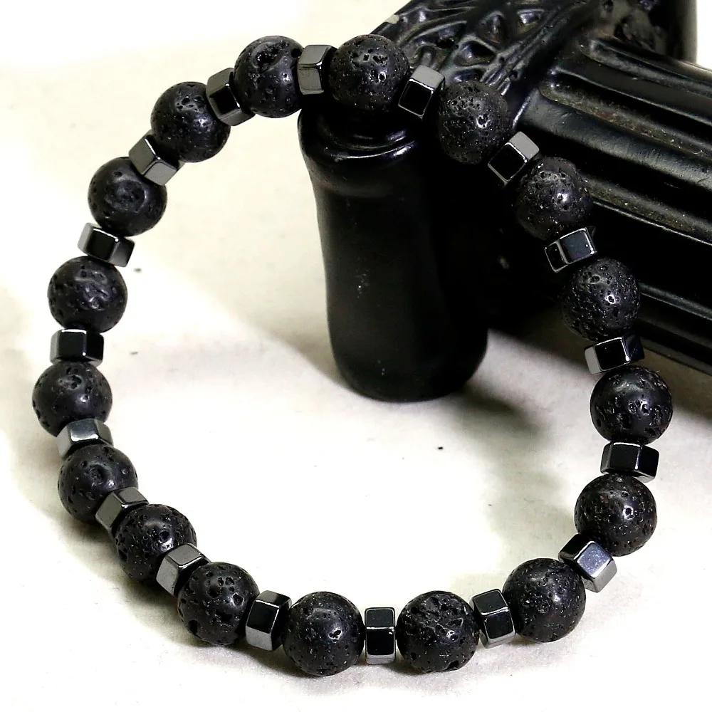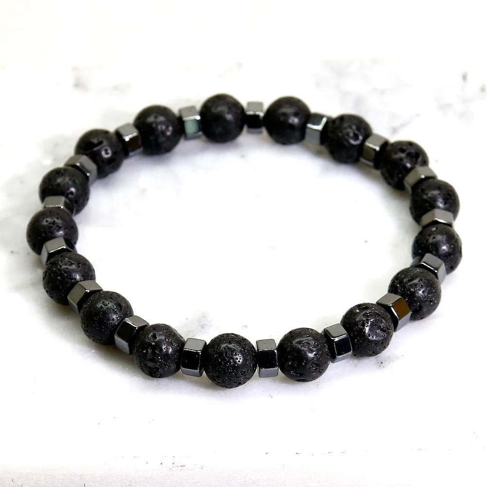 Ce bracelet aux vertus lithothérapie de l’hématite et de la lave est de couleur noire par nature. Fait à la main, sa conception en pierre naturelle supérieure en fait un objet unique. La réunion des perles de pierre de lave noire et de l’hématite vont avoir des pouvoirs énergétiques forts. Ces derniers vont agir sur votre organismes et sur certains de vos chakras.