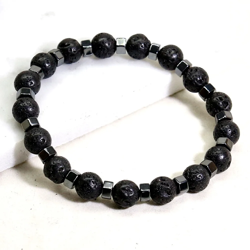 - 1 bracelet lithothérapie hématite et pierre de lave noire