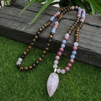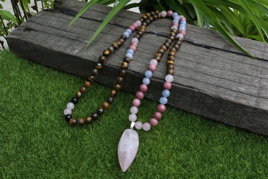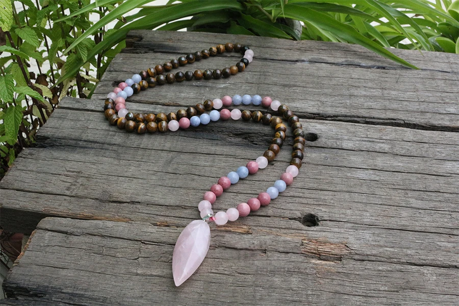 - Matériaux : Rhodochrosite, Quartz Rose, Œil de Tigre